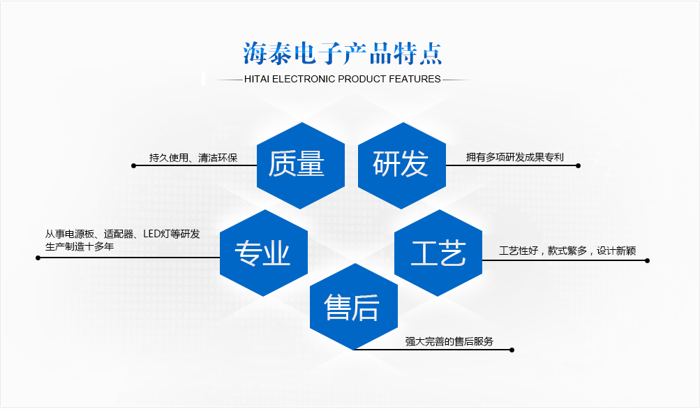 威海海泰电子有限公司成立于2003年,现有厂房面积7500平方米,员工200余人。公司致力于开关电源、LED电源、电源适配器、手机充电器、医疗电源等自主研发、生产和销售。秉承 “以顾客为中心”的宗旨,坚持“以人为本、质量至上 、满足顾客、节能降耗、清洁环保、持续改进 ”的质量、环境方针,科学合理地组织生产、有效地提高质量。通过了ISO9001质量管理体系认证及ISO14001环境管理体系认证。在国内,与中兴通讯, 江苏鱼跃医疗设备,海信,浪潮,九号公司,青米,史密斯等国内外知名企业建立了长期合作关系。